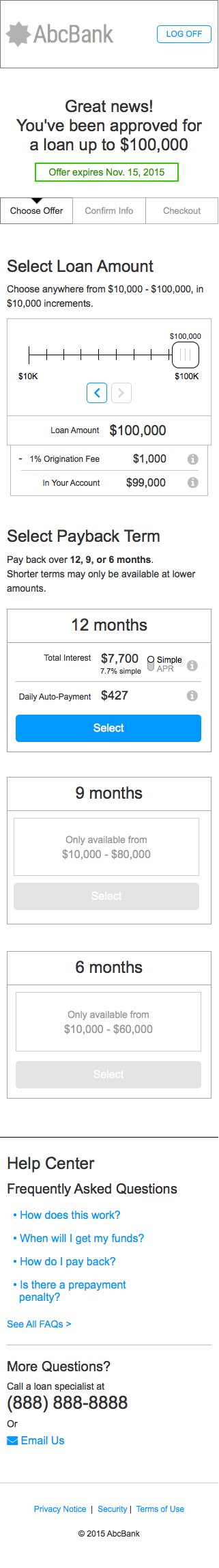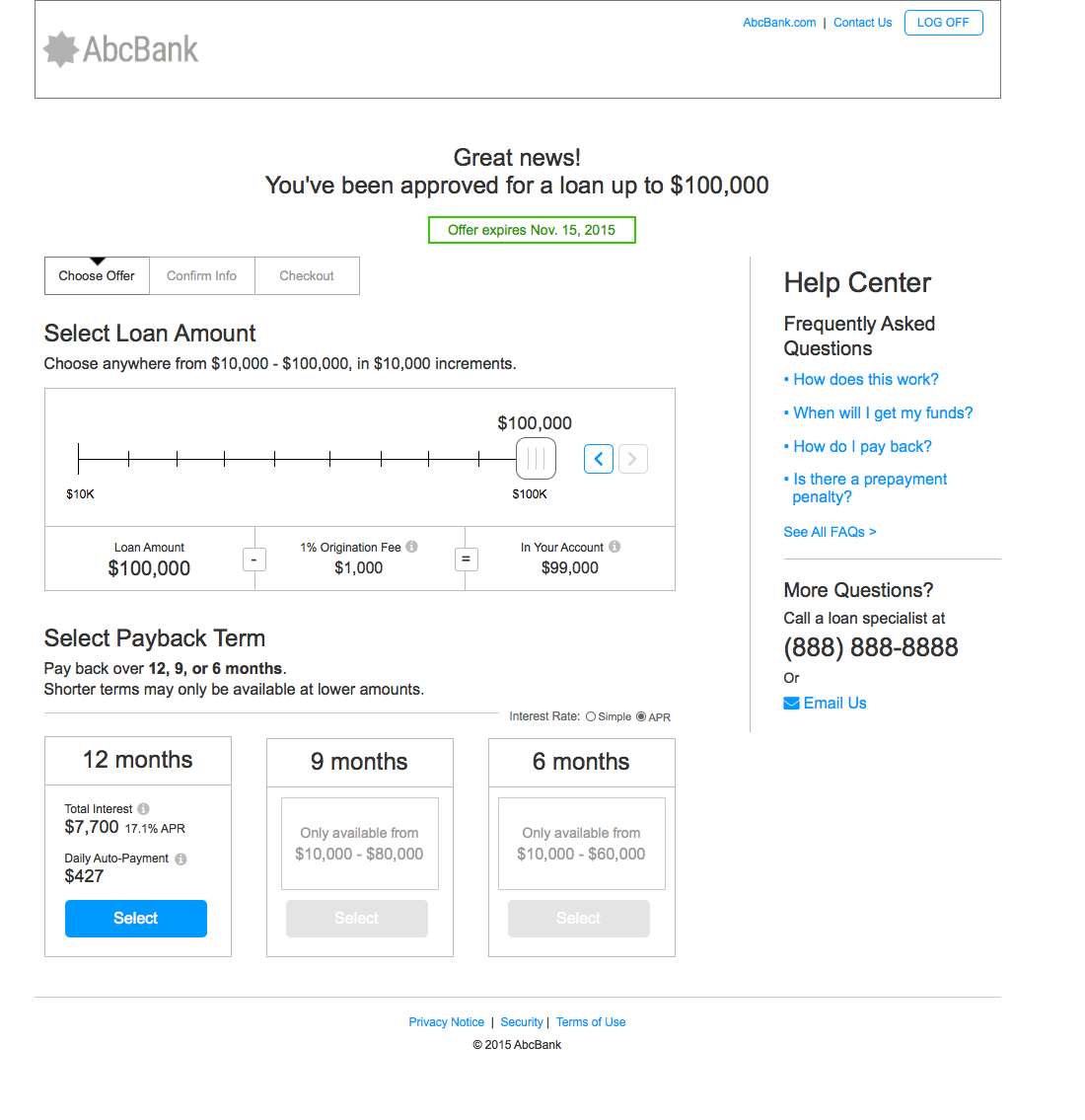 We set out to change that by pre-approving customers and letting them select their loan amount and terms online.