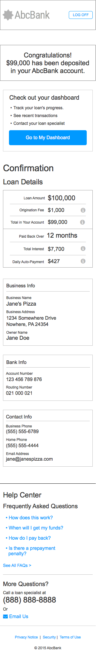 In parallel, I collaborated with a visual designer to finalize the look and feel. Chase had strict visual design guidelines, so we had a dedicated visual designer handle the design and approval process. Once the visual designs were approved, Engineering finished development.